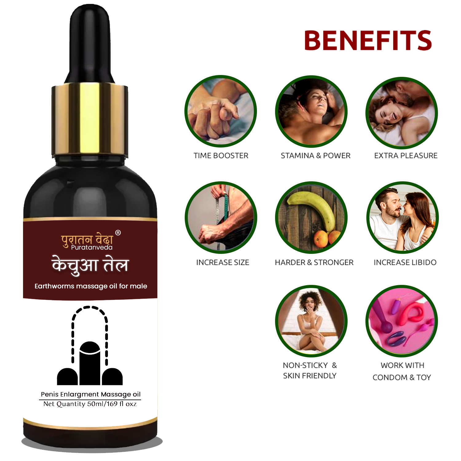 Puratanveda Kechua Massage Oil is a premium Ayurvedic formula crafted to support men’s strength, stamina, and wellness. Enriched with traditional herbs, this oil promotes blood circulation and natural vitality when used with regular massage. Designed for external application, it helps improve firmness, energy, and confidence. No harmful chemicals – just pure herbal nourishment for your wellness routine.